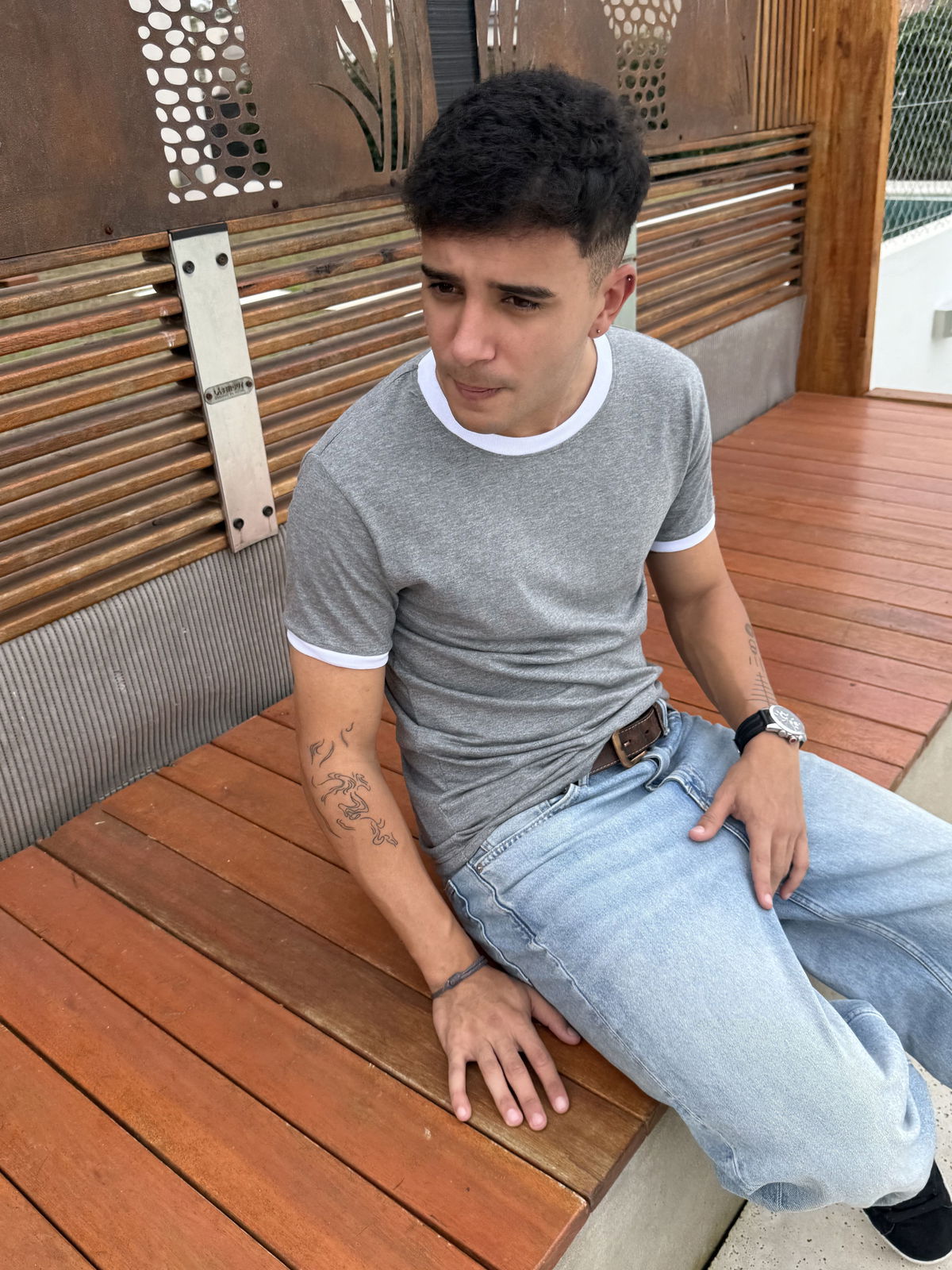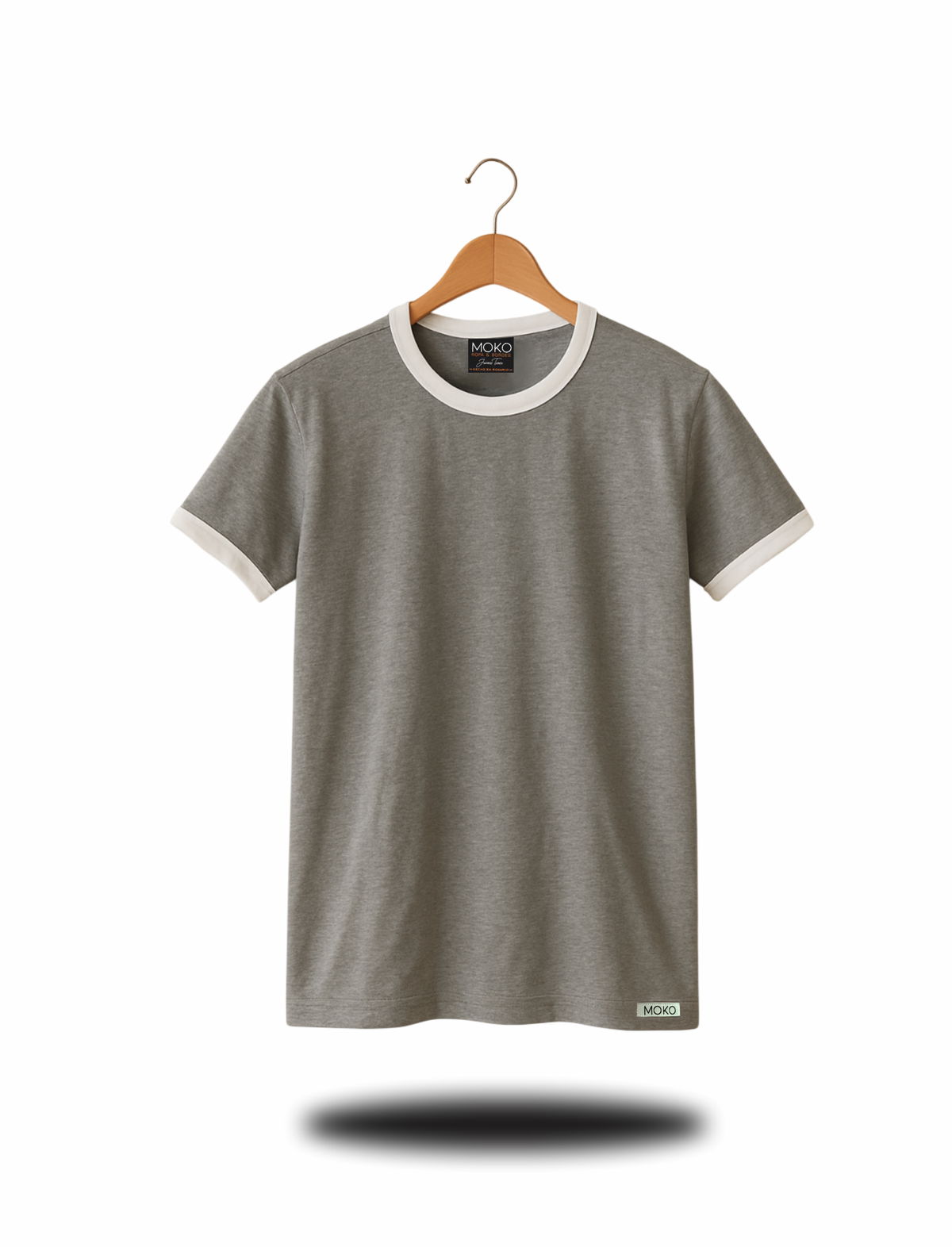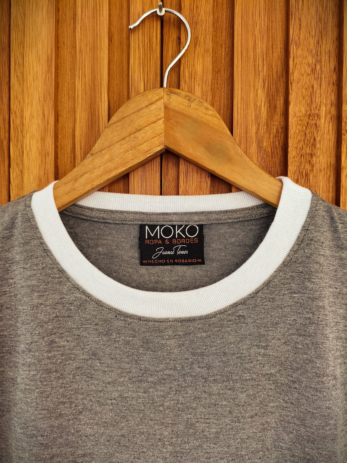 Remera de algodon 24/1 peinado , con rib en cuello y mangas , cuerpo en color gris melange y bordes en color blanco