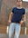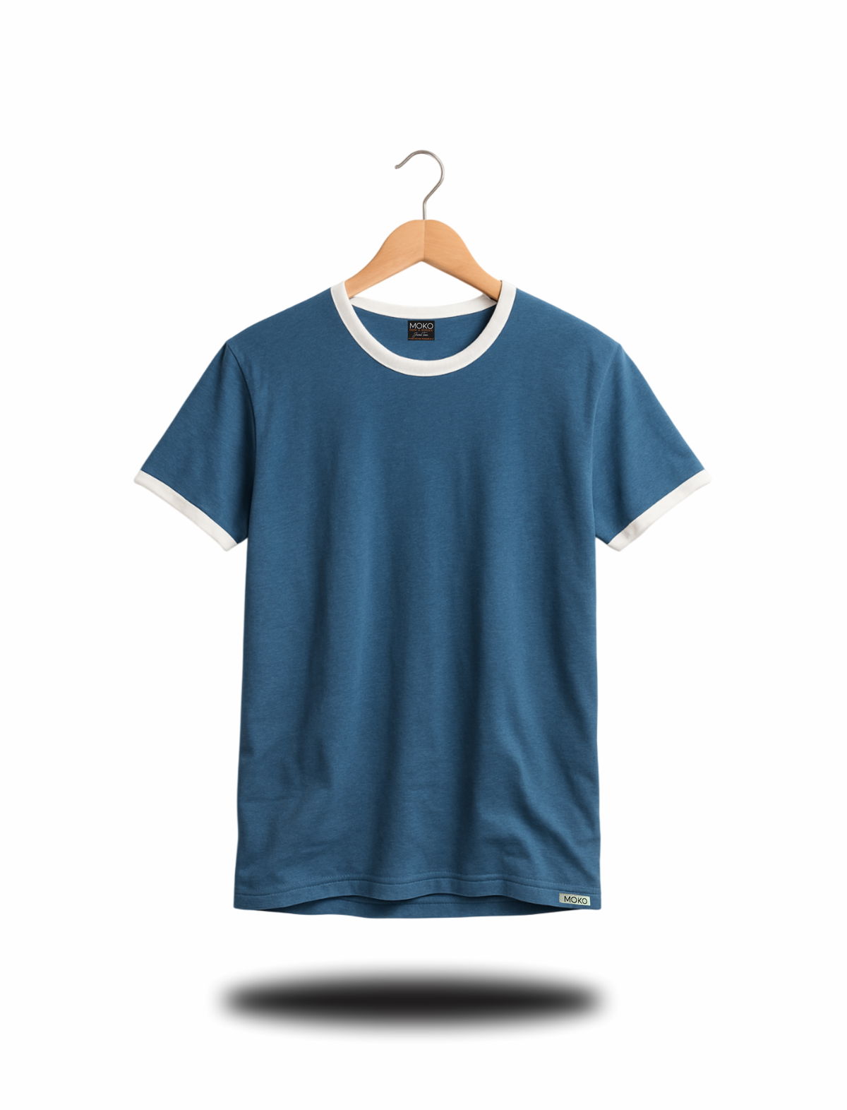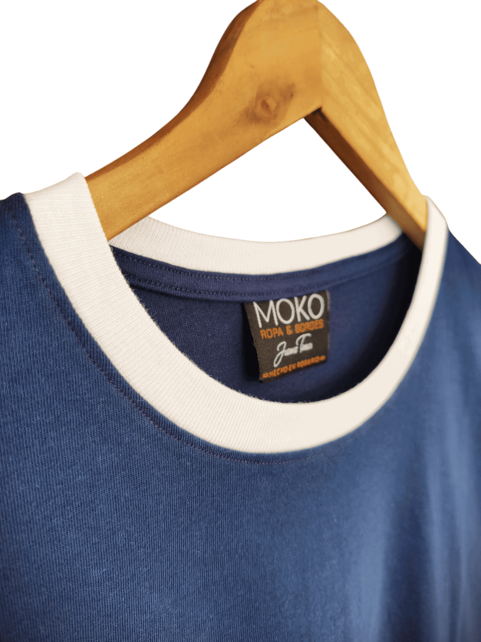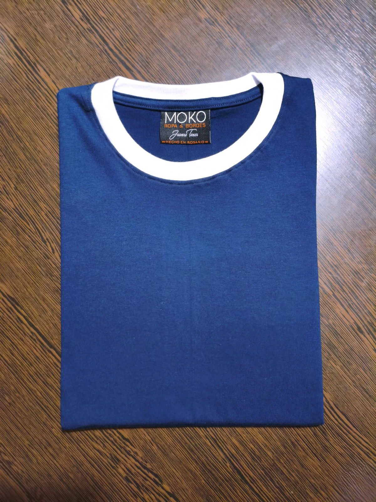 Remera de algodon 24/1 peinado , con rib en cuello y mangas , cuerpo en color azul oscuro y bordes en color blanco