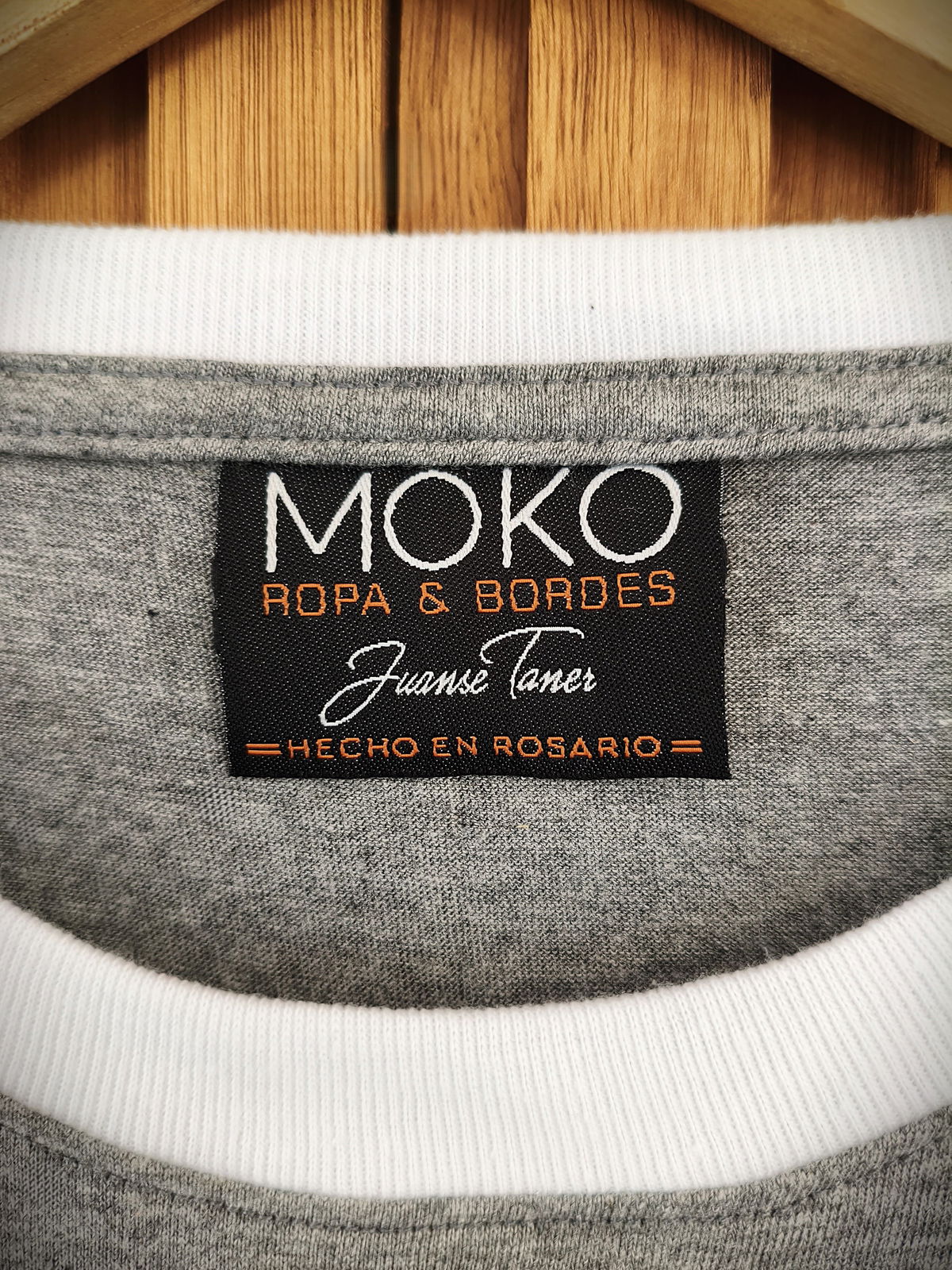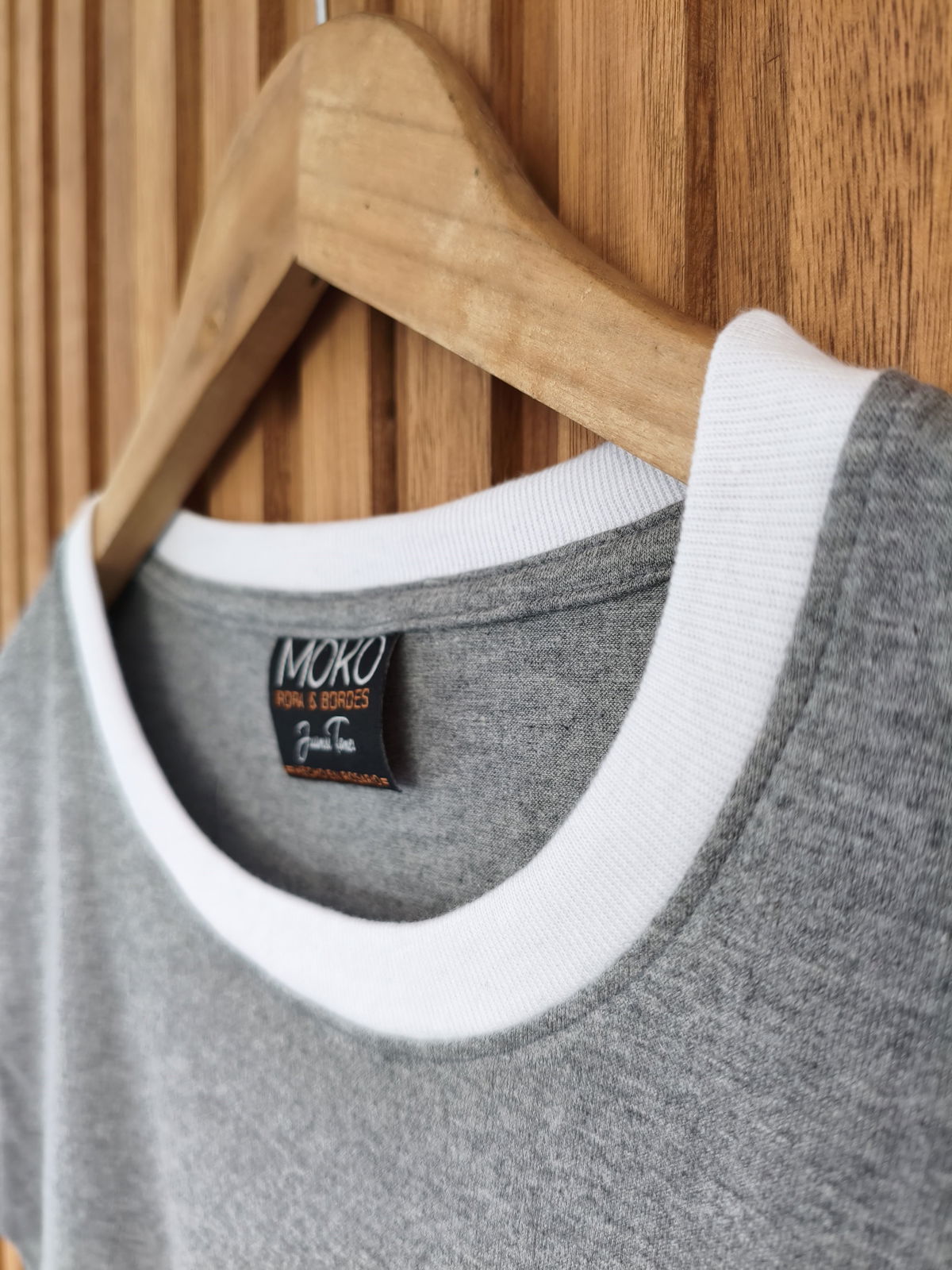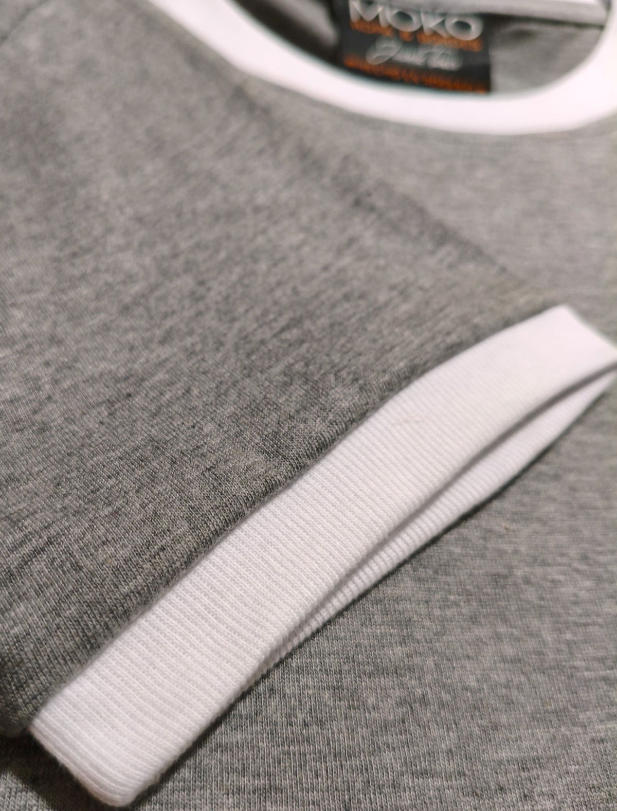 Remera de algodon 24/1 peinado , con rib en cuello y mangas , cuerpo en color gris melange y bordes en color blanco