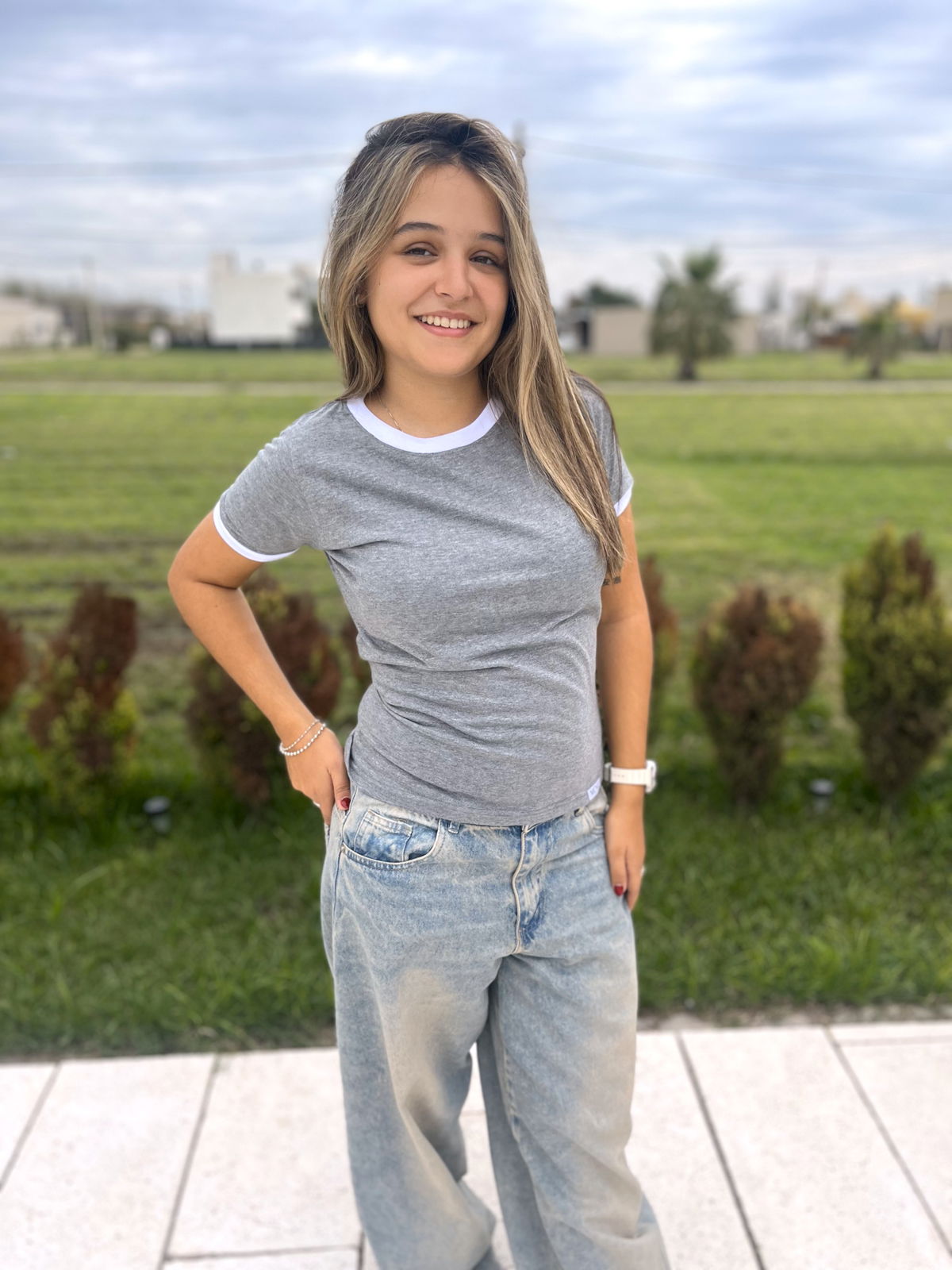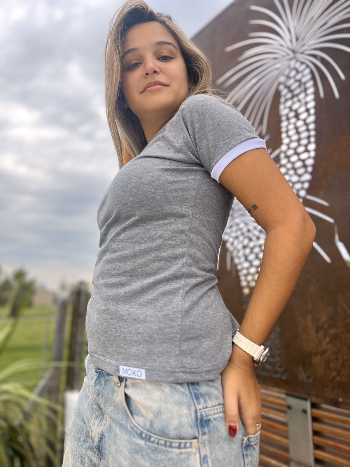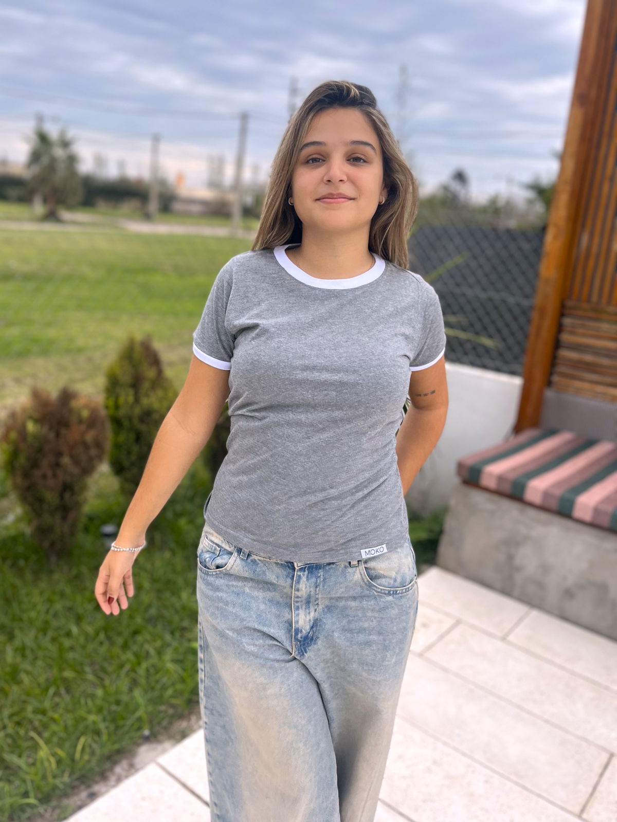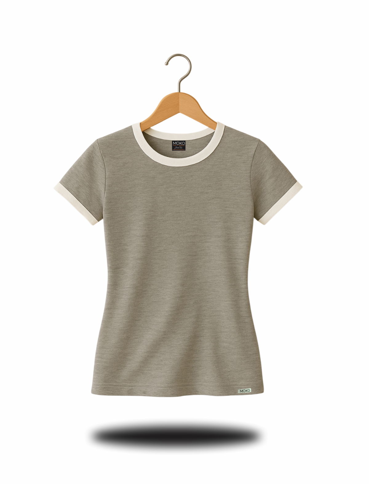 Remera de algodon 24/1 peinado , con rib en cuello y mangas , cuerpo en color gris melange y bordes en color blanco